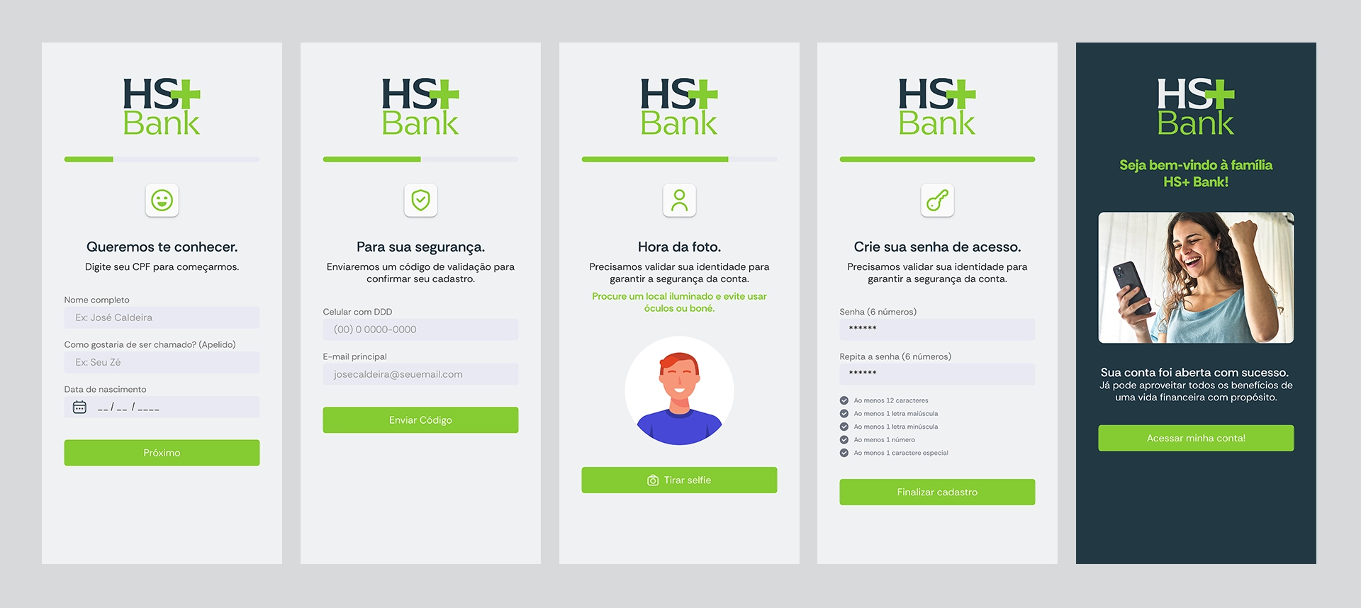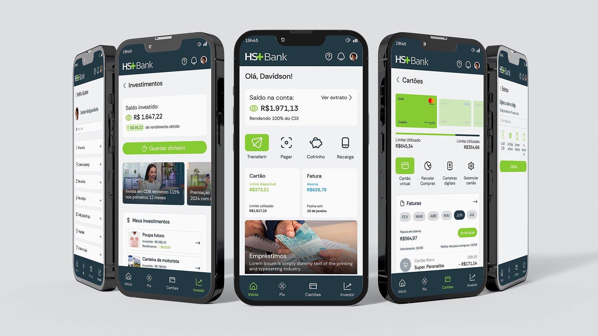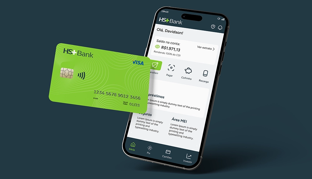 O projeto de UX/UI para o aplicativo, foi iniciado após a construção da Identidade Visual do HS+ Bank.