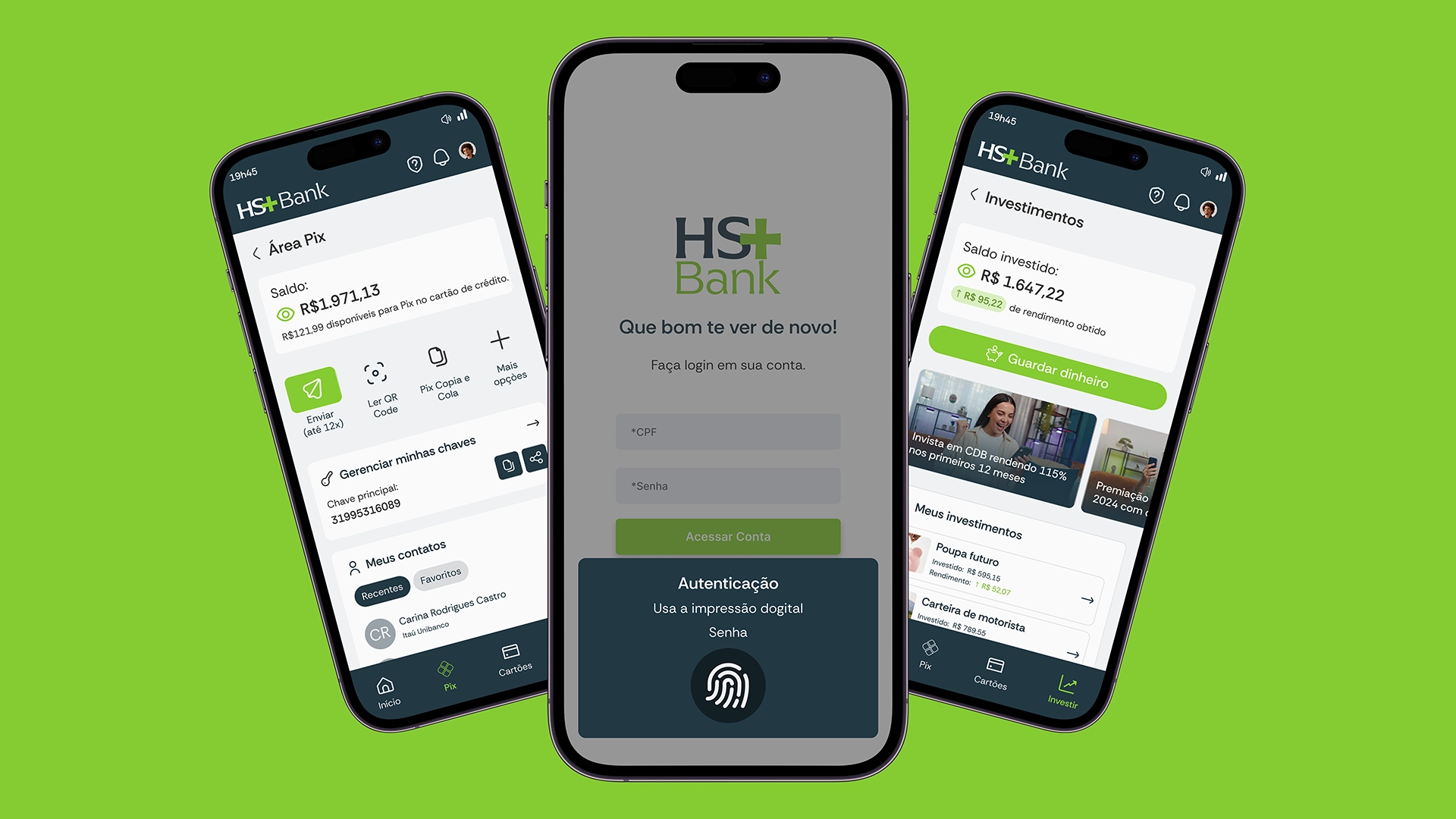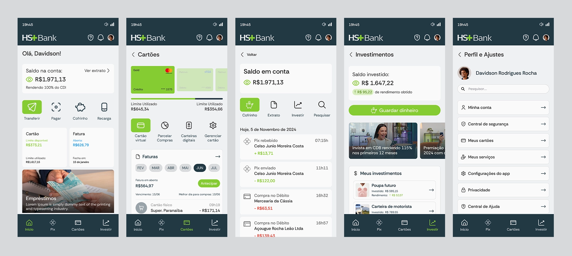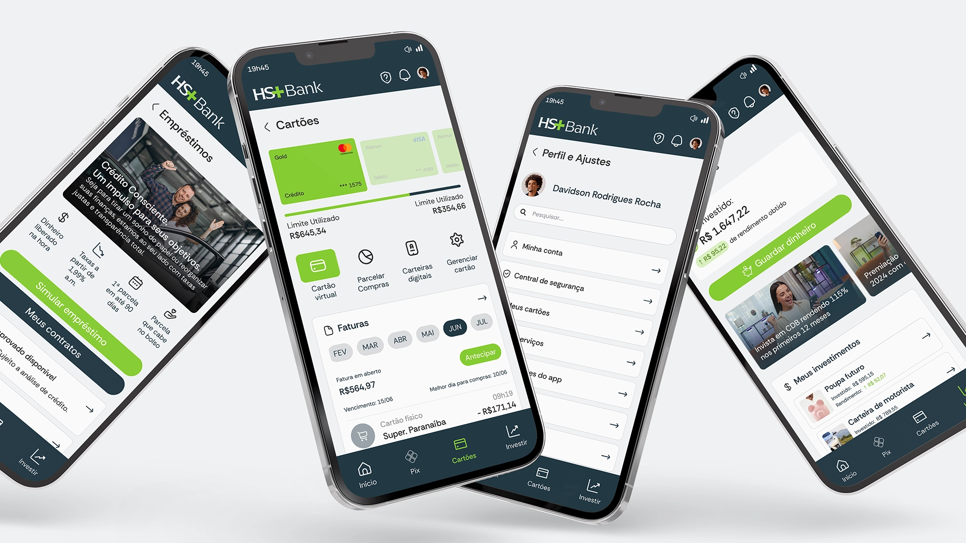 O projeto de UX/UI para o aplicativo, foi iniciado após a construção da Identidade Visual do HS+ Bank.