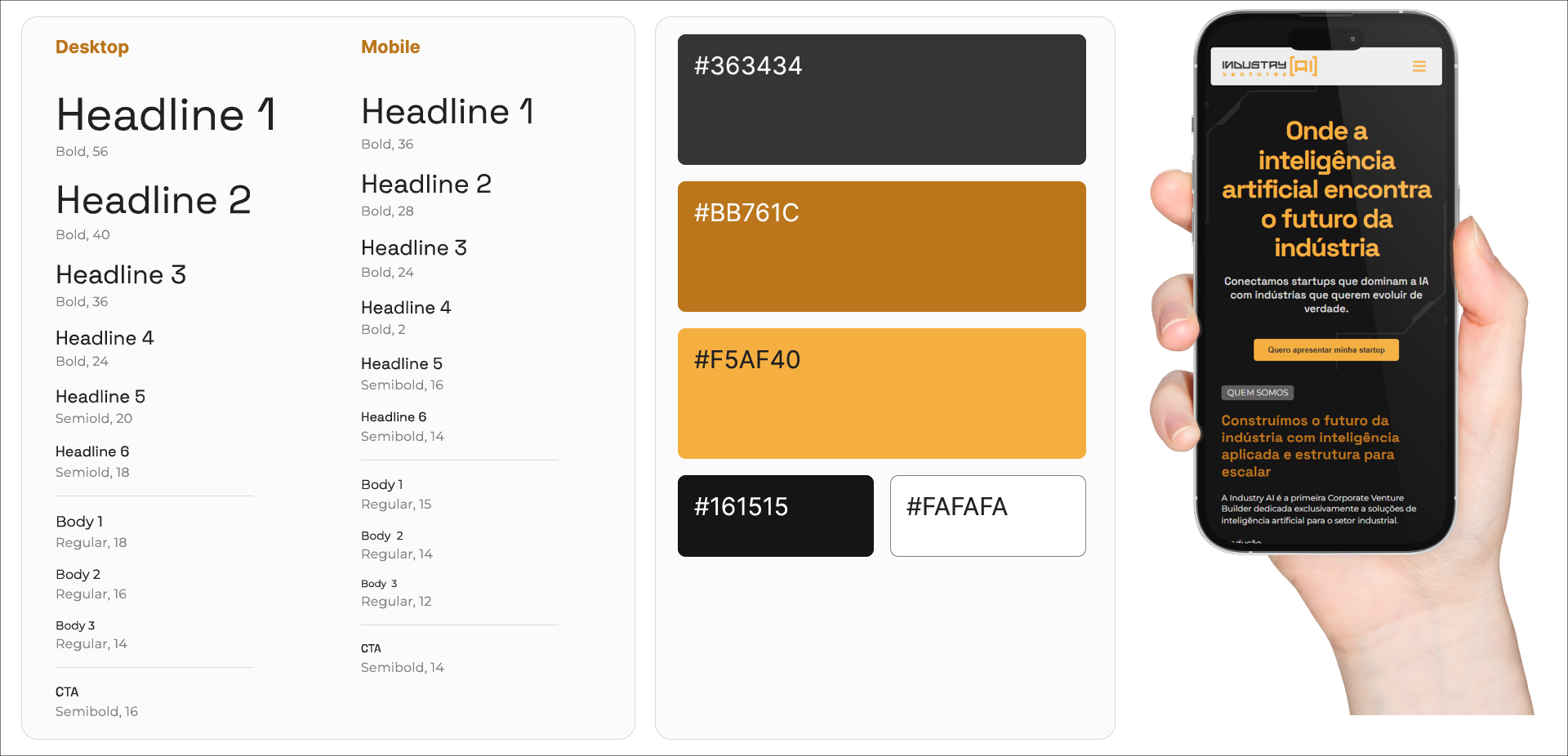 A identidade visual foi fornecida pela a FCJ Venture Builder e serviu de base para construção do site, feita por mim. Agradeço a FCJ e também a IndustryAI pela oportunidade de participar deste projeto.