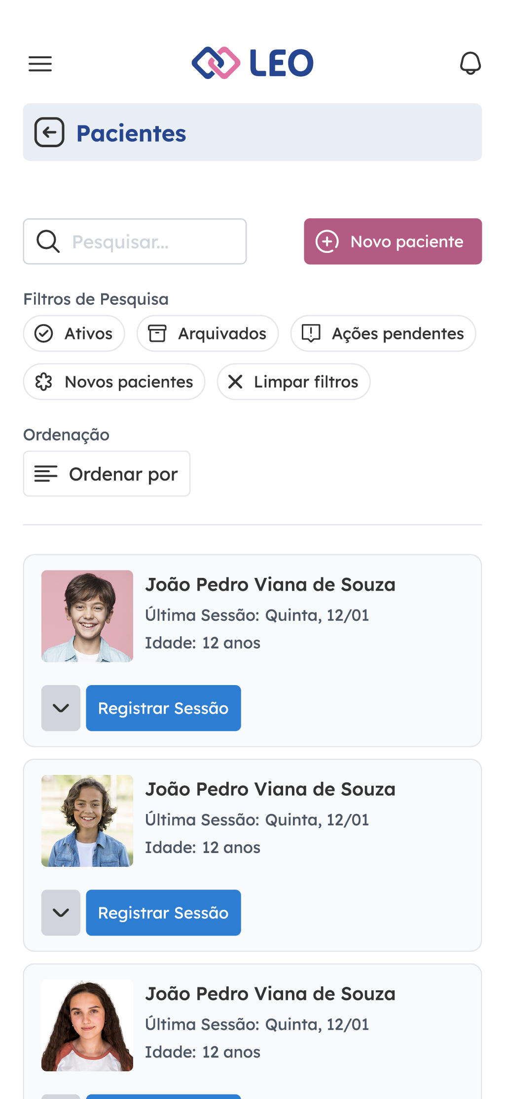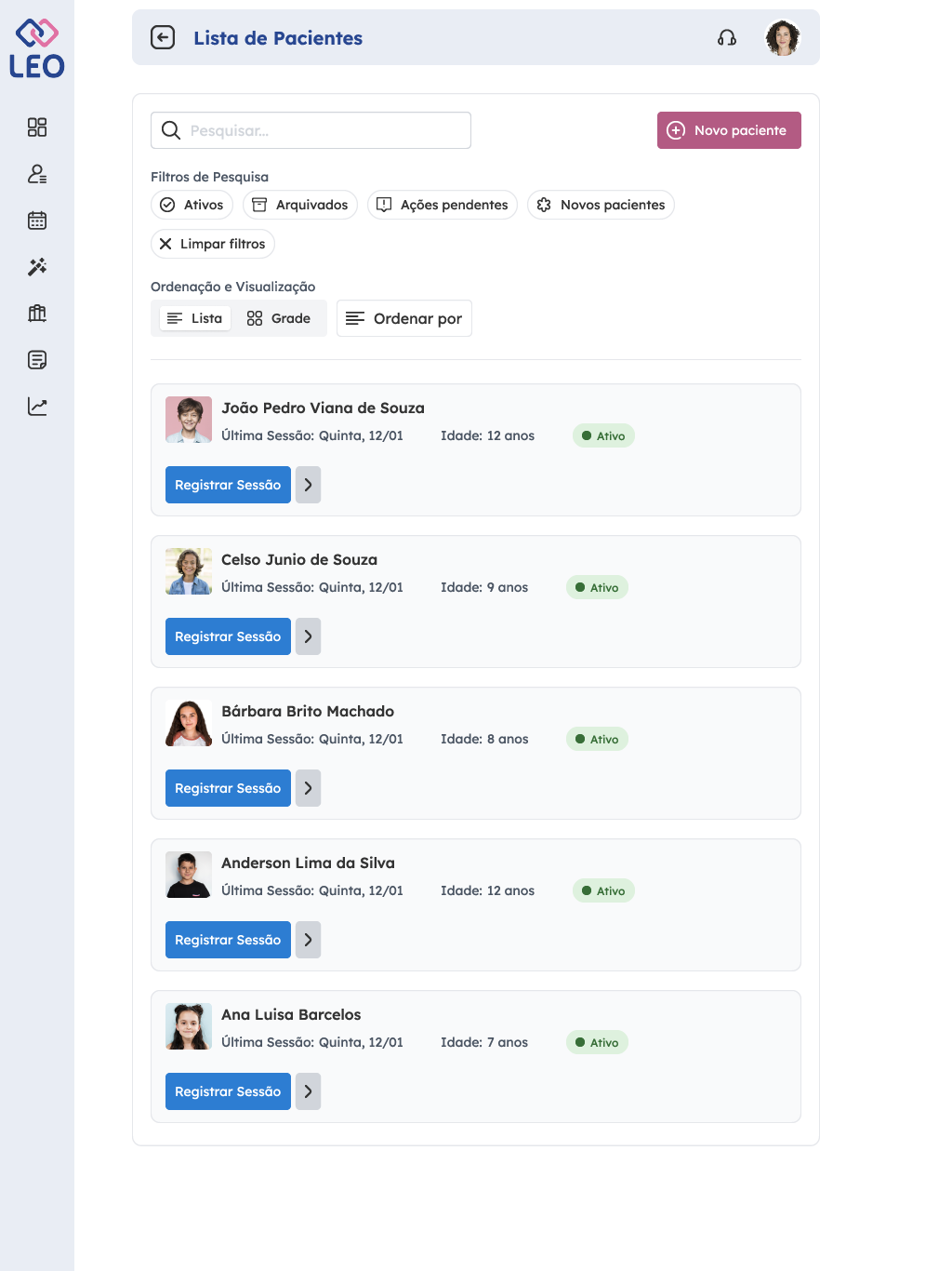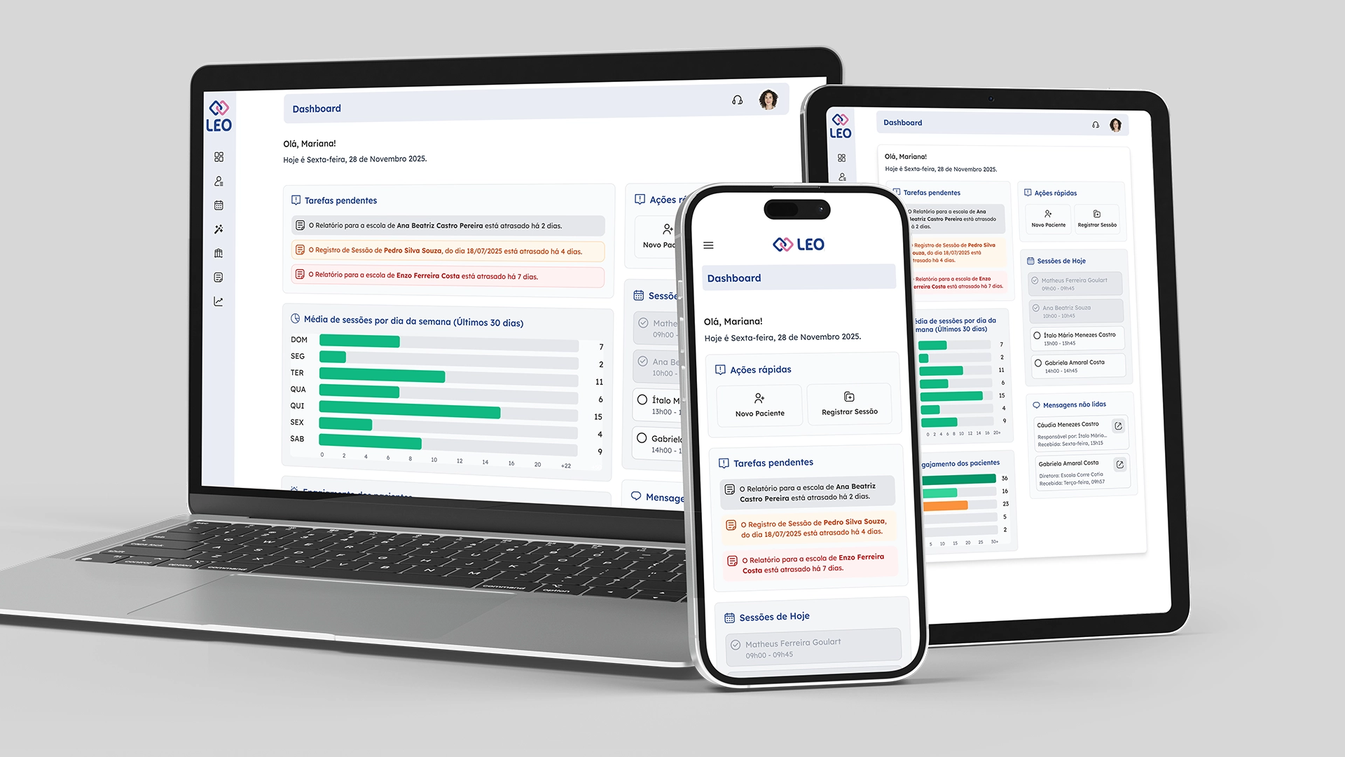 Nossa pergunta central era: Como podemos redesenhar os fluxos de trabalho clínicos para serem mais rápidos, intuitivos e colaborativos, refletindo a proposta de valor do LEO App de transformar dados em clareza?