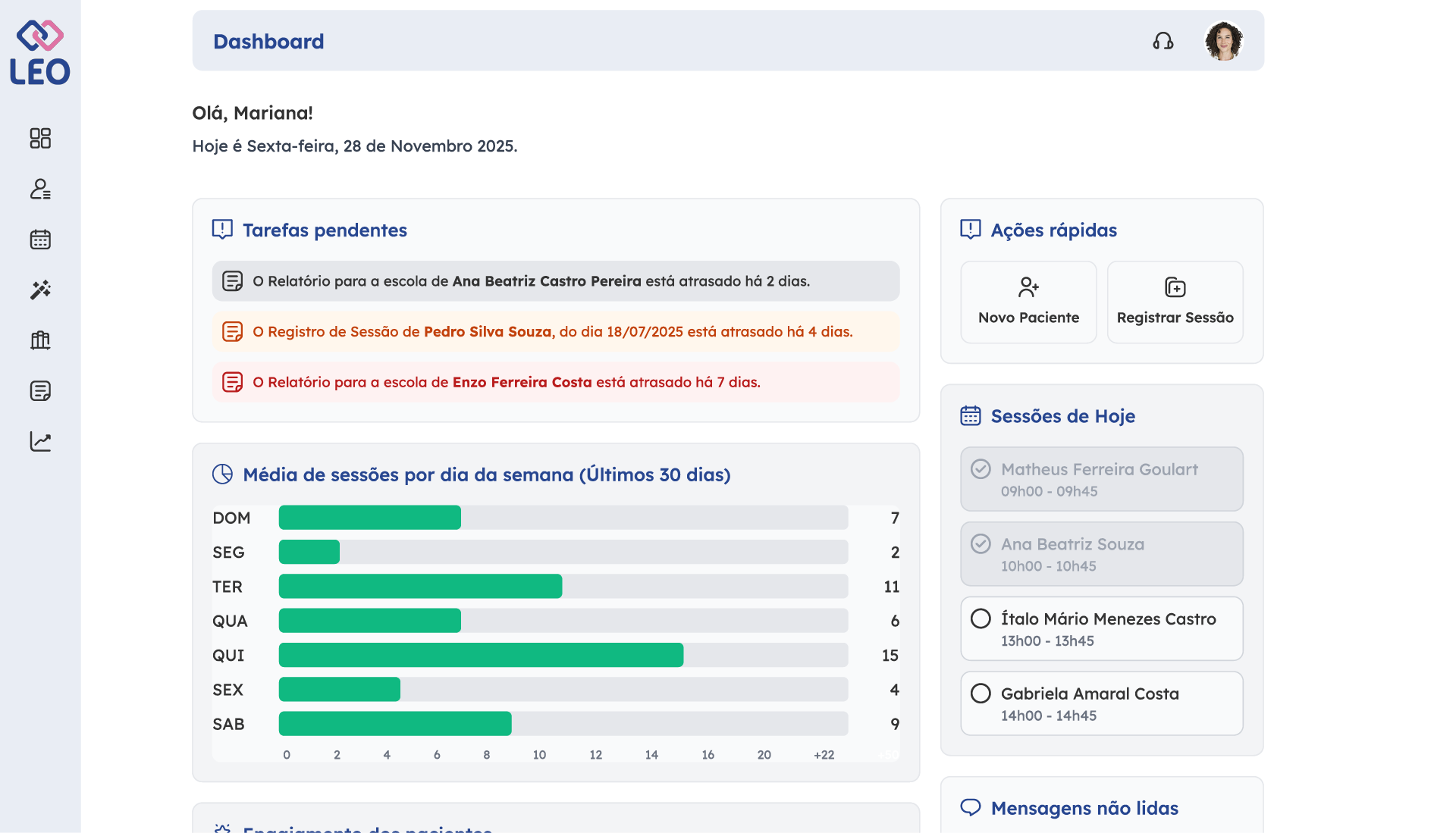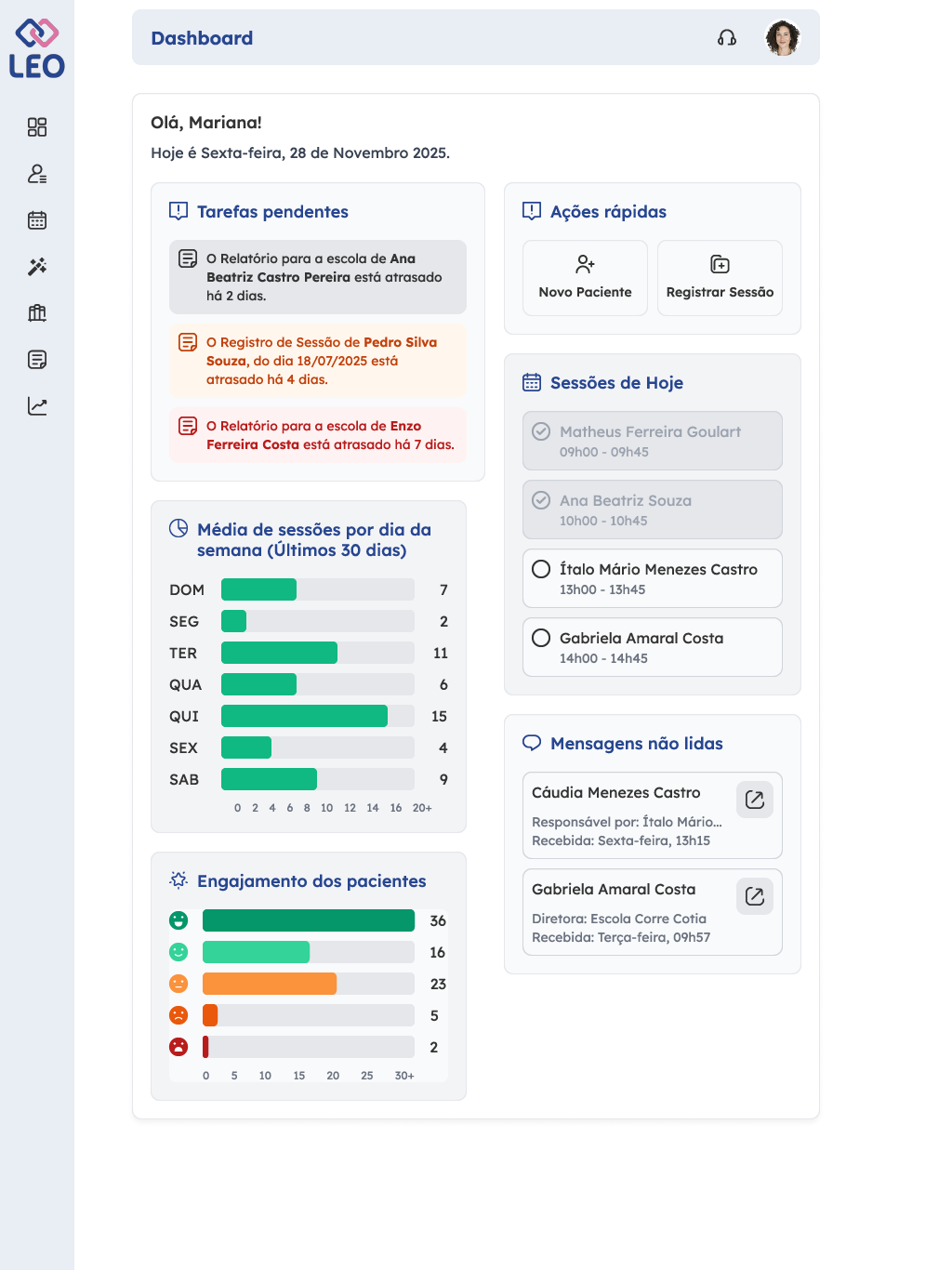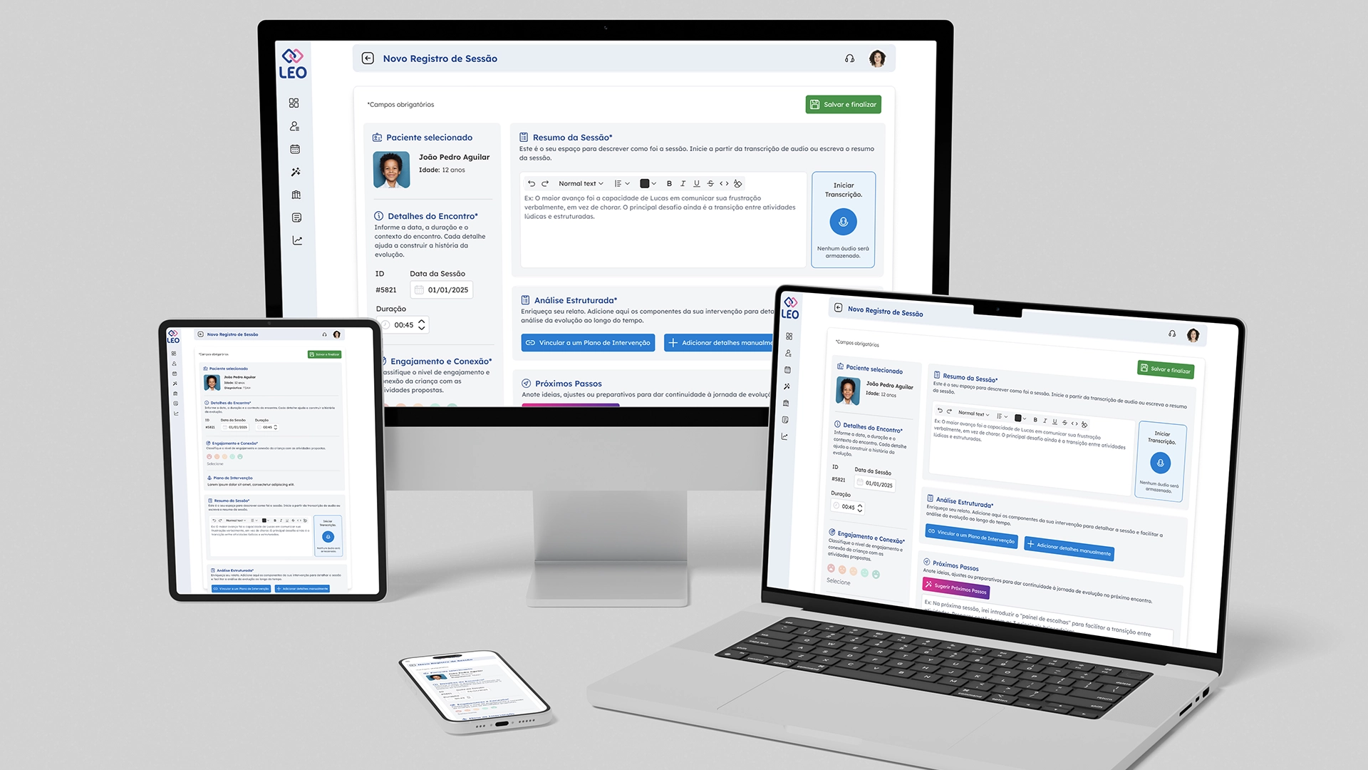 - O feedback qualitativo dos testes de usabilidade foi extremamente positivo, com terapeutas relatando que a nova interface era “muito mais clara e profissional” e que “economizaria muito tempo no dia a dia”.