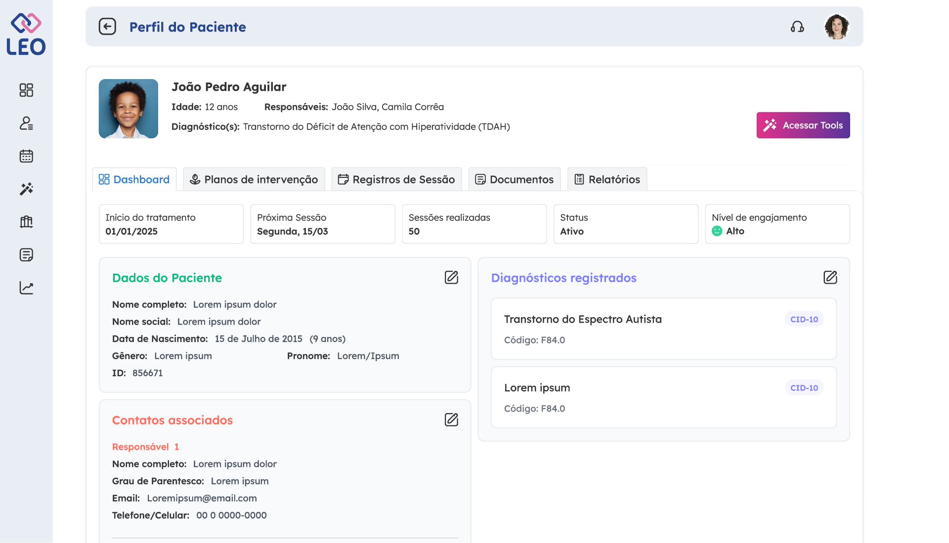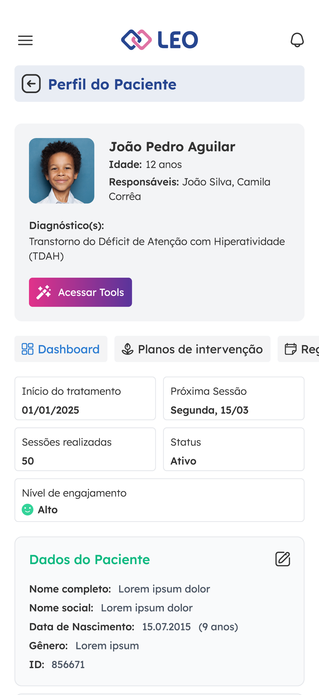 O desafio de negócio era claro: criar uma experiência de produto que não apenas centralizasse as informações, mas que também se tornasse uma ferramenta clínica inteligente e indispensável para o terapeuta.