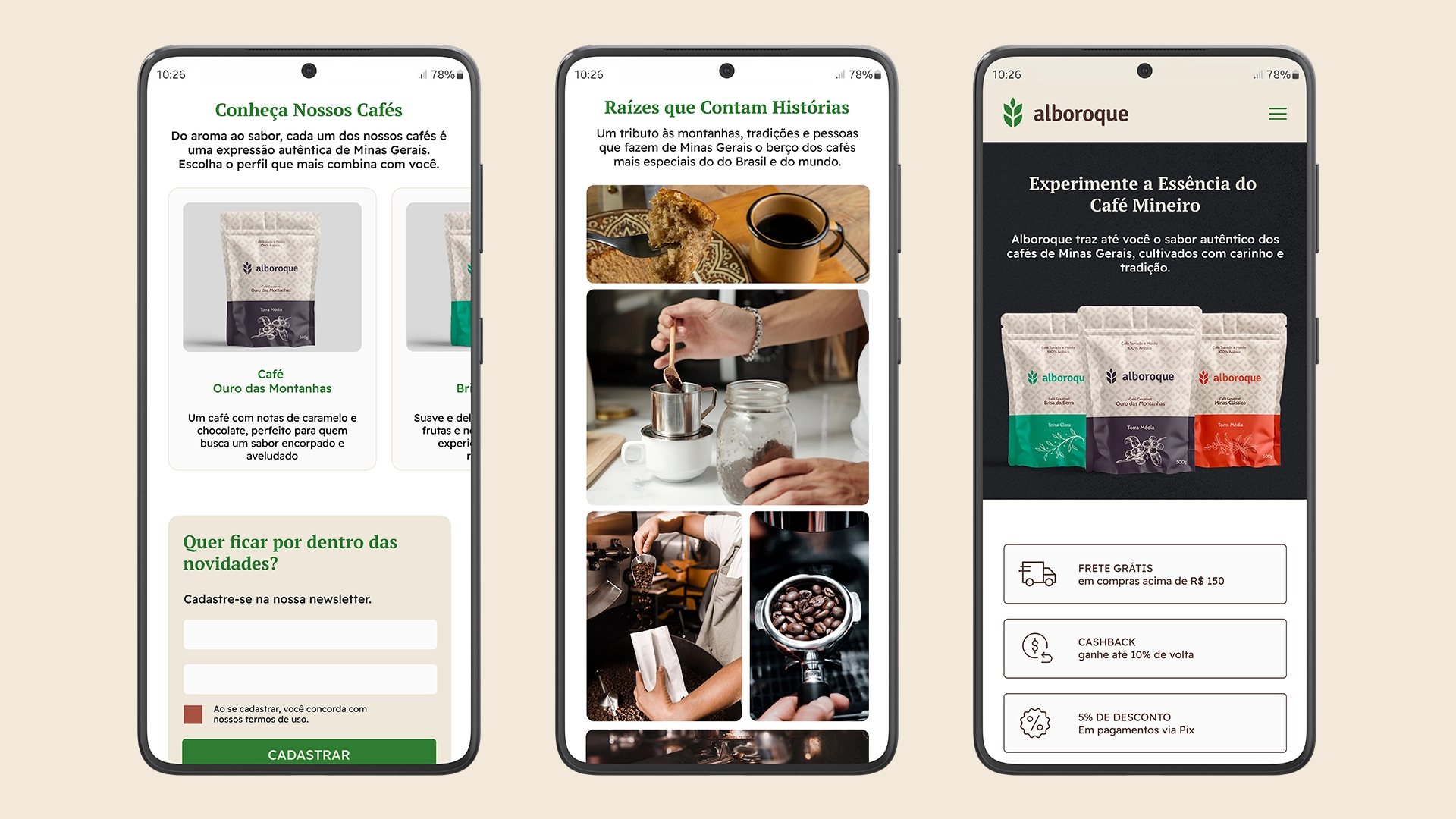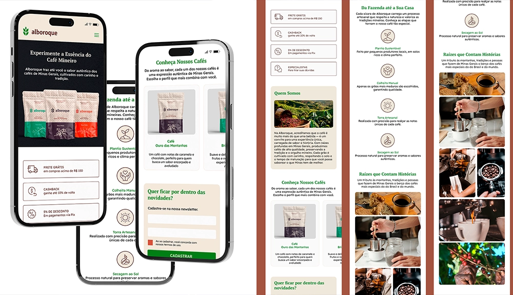 Neste projeto, meu objetivo foi criar uma experiência digital que traduzisse a essência de Minas Gerais para uma marca de cafés de alta qualidade. Resolvi problemas como destacar a autenticidade da marca em um mercado competitivo e comunicar com clareza os valores que conectam a tradição mineira ao cuidado artesanal.